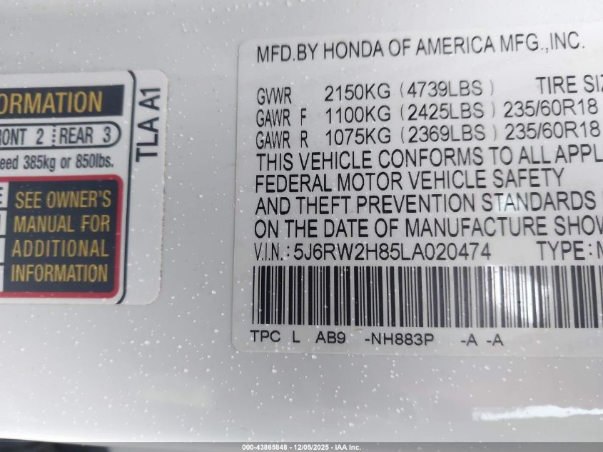 2020 HONDA CR-V 2020 року Бензин, 1.5, Повний привід, vin - 5J6RW2H85LA020474 з США