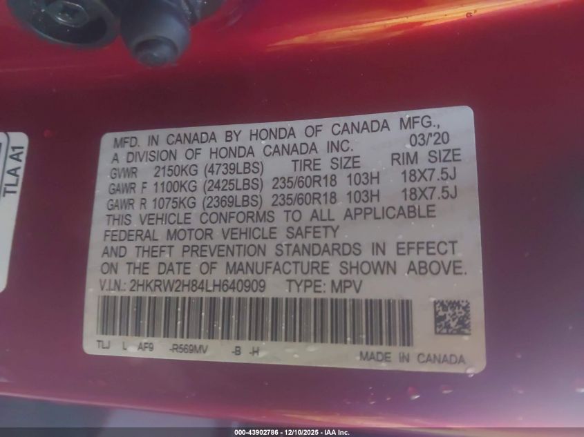 2020 HONDA CR-V 2020 року Бензин, 1.5, Повний привід, vin - 2HKRW2H84LH640909 з США