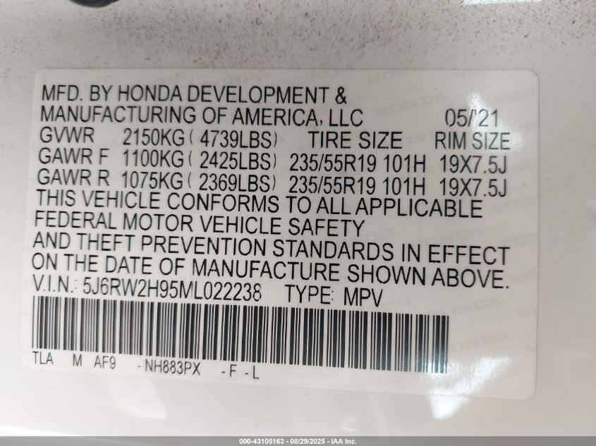 2021 HONDA CR-V 2021 року Бензин, 1.5, Повний привід, vin - 5J6RW2H95ML022238 з США