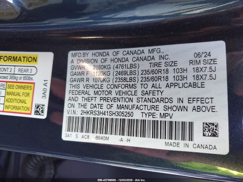 2025 HONDA CR-V 2025 року Бензин, 1.5, Передній привід, vin - 2HKRS3H41SH305250 з США