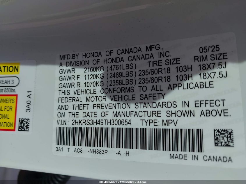 2026 HONDA CR-V 2026 року Бензин, 1.5, Передній привід, vin - 2HKRS3H49TH300654 з США