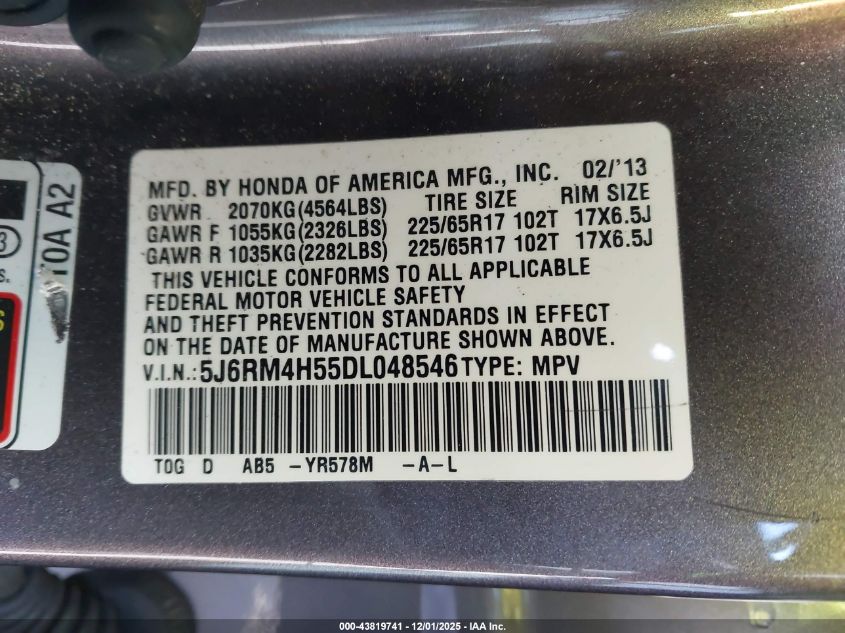 2013 HONDA CR-V 2013 року Бензин, 2.4, Повний привід, vin - 5J6RM4H55DL048546 з США