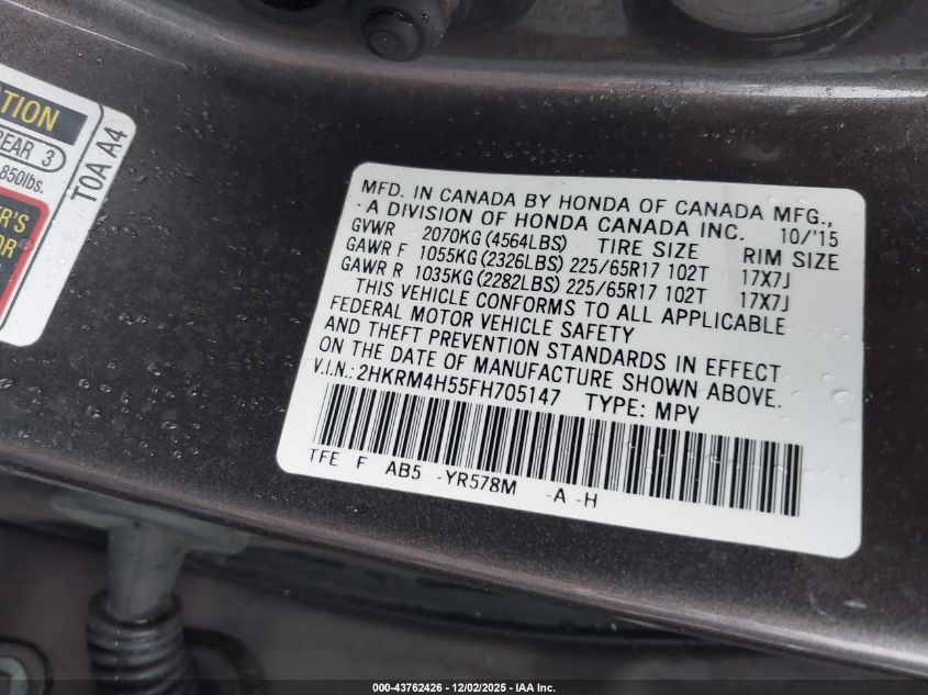2015 HONDA CR-V 2015 року Бензин, 2.4, Повний привід, vin - 2HKRM4H55FH705147 з США