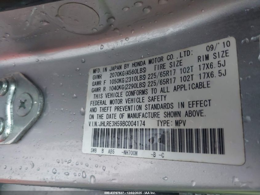 2011 HONDA CR-V 2011 року Бензин, 2.4, Передній привід, vin - JHLRE3H59BC004174 з США
