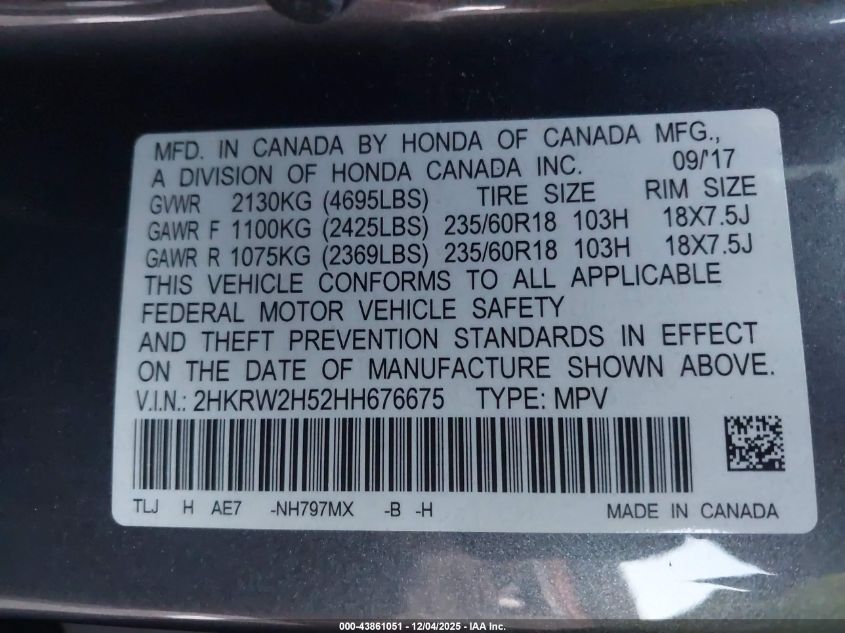 2017 HONDA CR-V 2017 року Бензин, 1.5, Повний привід, vin - 2HKRW2H52HH676675 з США