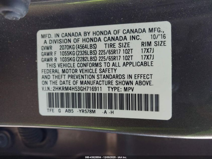 2016 HONDA CR-V 2016 року Бензин, 2.4, Повний привід, vin - 2HKRM4H53GH716911 з США