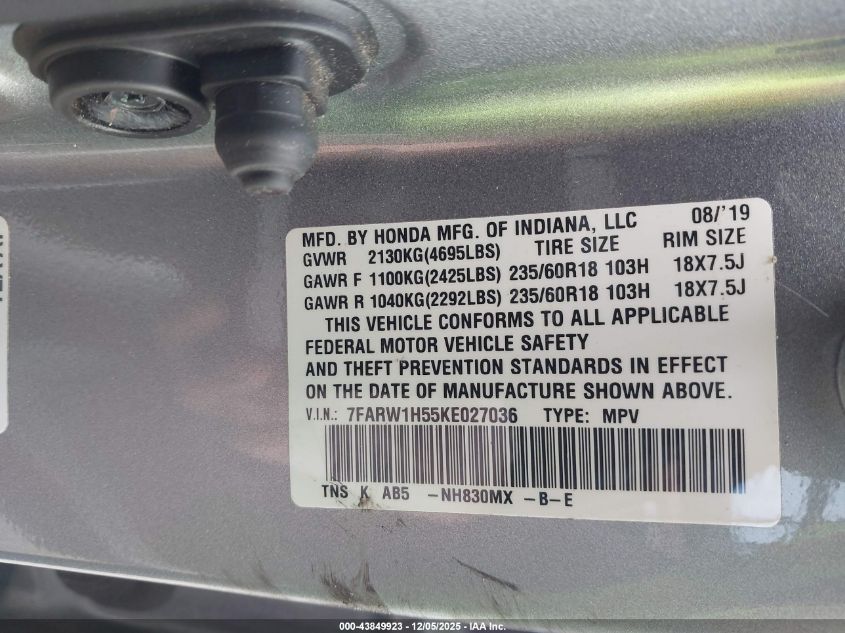 2019 HONDA CR-V 2019 року Бензин, 1.5, Передній привід, vin - 7FARW1H55KE027036 з США