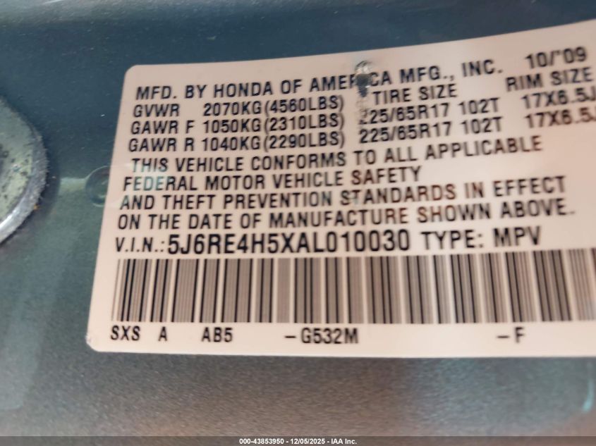 2010 HONDA CR-V LX