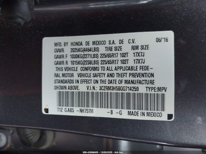 2016 HONDA CR-V 2016 року Бензин, 2.4, Передній привід, vin - 3CZRM3H58GG714259 з США
