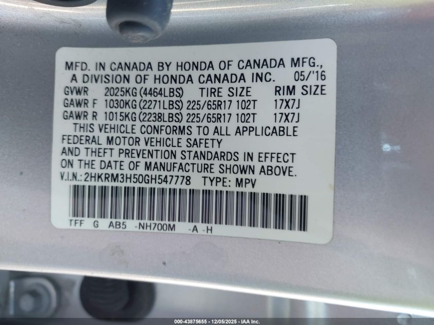 2016 HONDA CR-V 2016 року Бензин, 2.4, Передній привід, vin - 2HKRM3H50GH547778 з США
