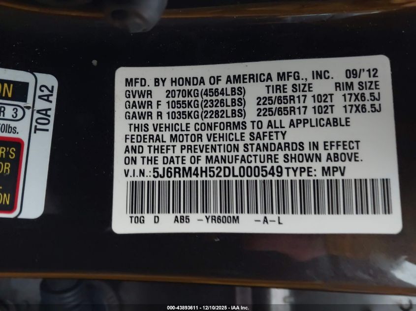 2013 HONDA CR-V 2013 року Бензин, 2.4, Повний привід, vin - 5J6RM4H52DL000549 з США