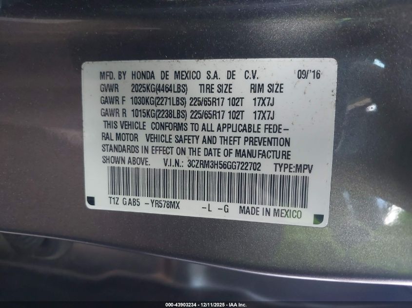 2016 HONDA CR-V LX