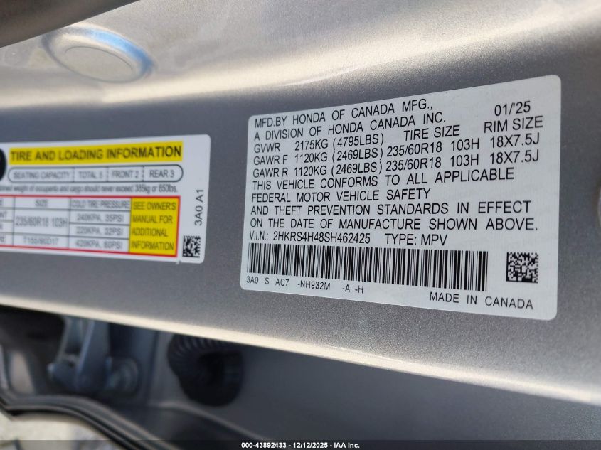 2025 HONDA CR-V 2025 року Бензин, 1.5, Повний привід, vin - 2HKRS4H48SH462425 з США