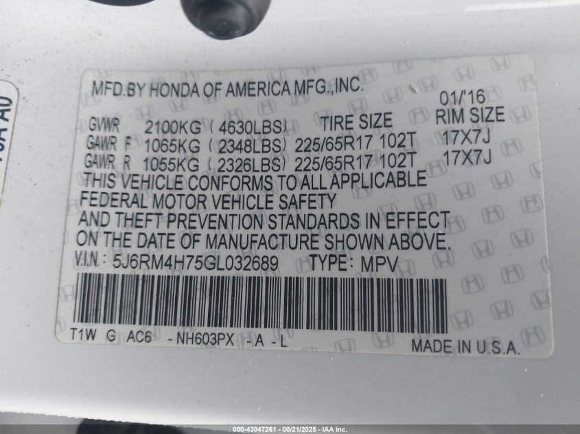 2016 HONDA CR-V 2016 року Бензин, 2.4, Повний привід, vin - 5J6RM4H75GL032689 з США