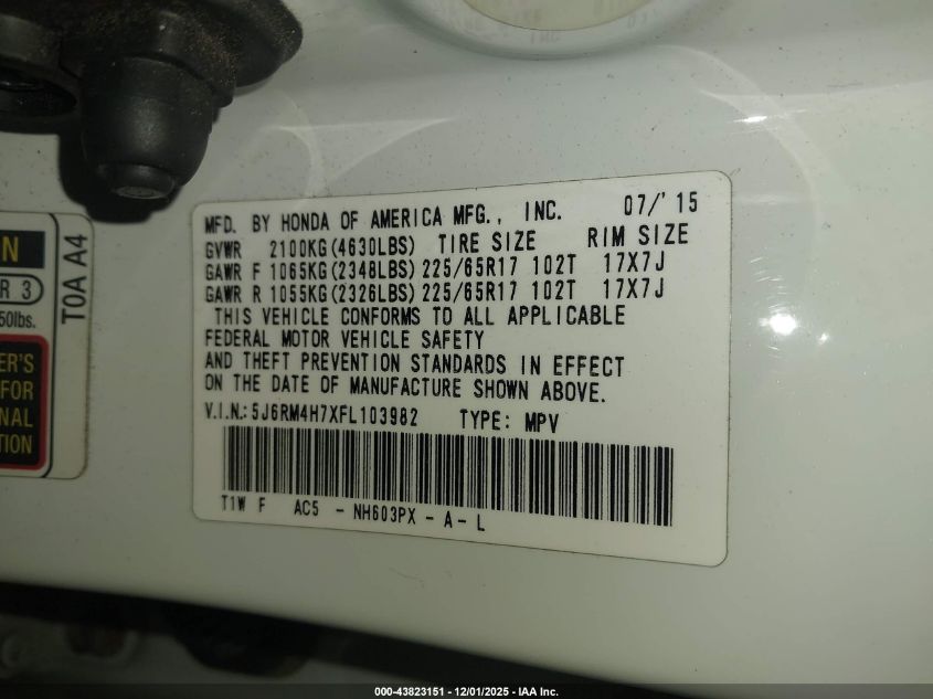 2015 HONDA CR-V 2015 року Бензин, 2.4, Повний привід, vin - 5J6RM4H7XFL103982 з США
