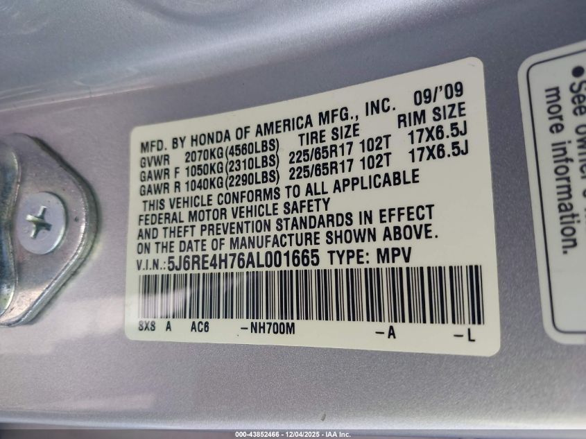 2010 HONDA CR-V 2010 року Бензин, 2.4, Повний привід, vin - 5J6RE4H76AL001665 з США