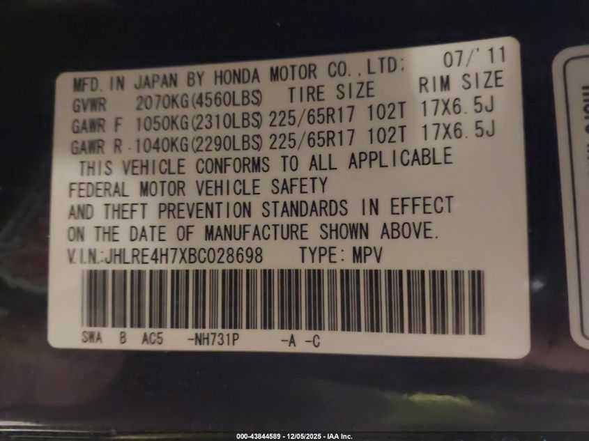 2011 HONDA CR-V 2011 року Бензин, 2.4, Повний привід, vin - JHLRE4H7XBC028698 з США