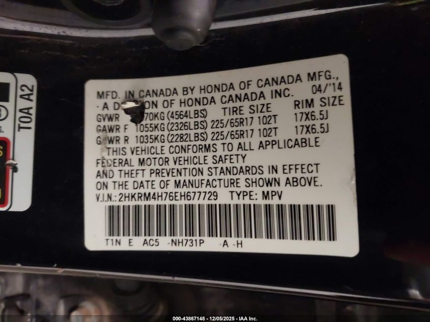 2014 HONDA CR-V 2014 року Бензин, 2.4, Повний привід, vin - 2HKRM4H76EH677729 з США