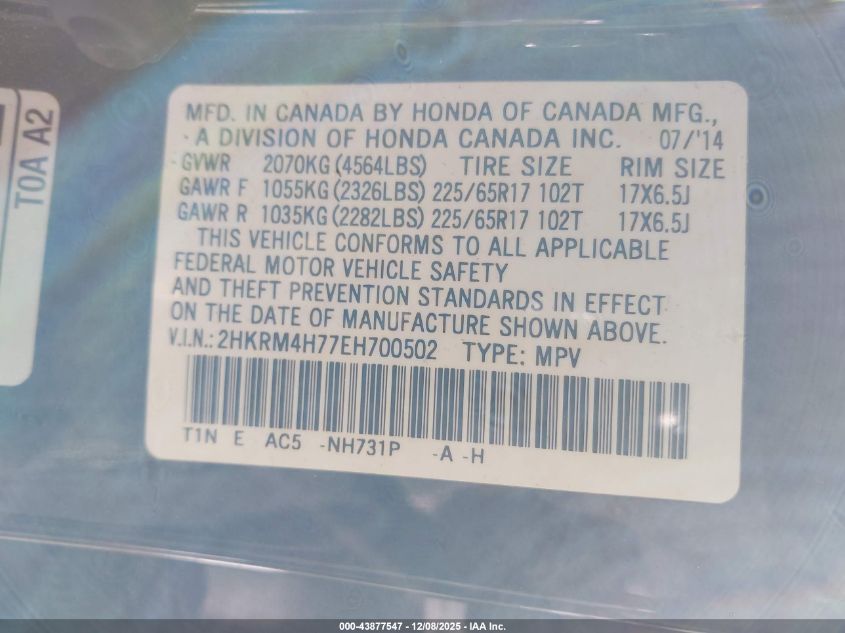 2014 HONDA CR-V 2014 року Бензин, 2.4, Повний привід, vin - 2HKRM4H77EH700502 з США
