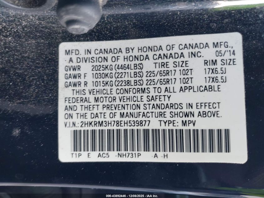 2014 HONDA CR-V 2014 року Бензин, 2.4, Передній привід, vin - 2HKRM3H78EH539877 з США