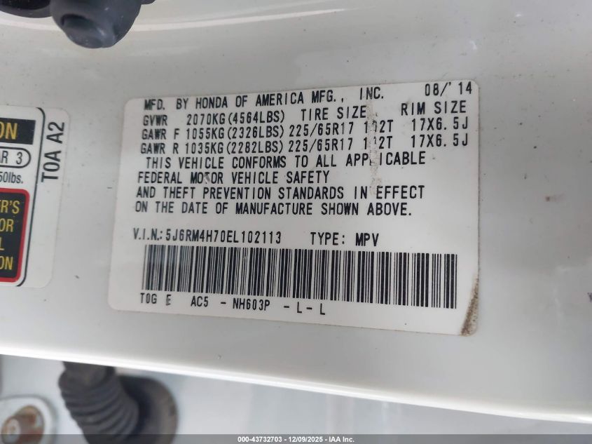 2014 HONDA CR-V 2014 року Бензин, 2.4, Повний привід, vin - 5J6RM4H70EL102113 з США