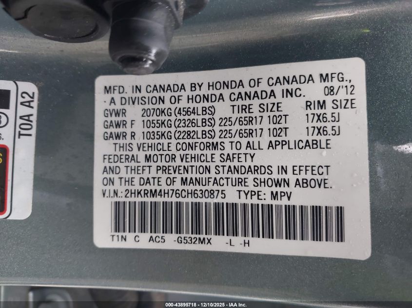 2012 HONDA CR-V 2012 року Бензин, 2.4, Повний привід, vin - 2HKRM4H76CH630875 з США