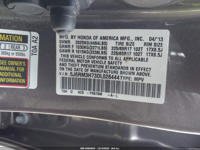 2013 HONDA CR-V 2013 року Бензин, 2.4, Передній привід, vin - 5J6RM3H73DL026444 з США
