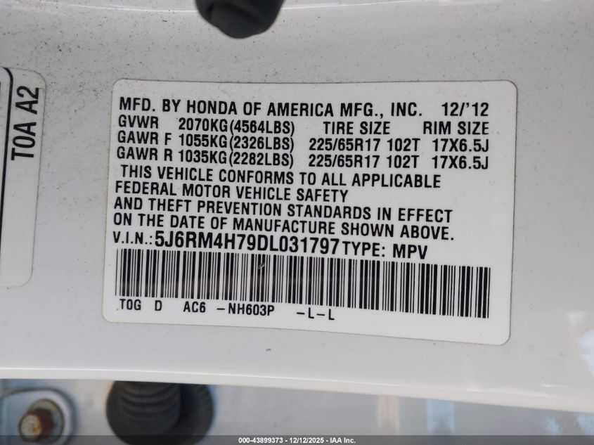 2013 HONDA CR-V 2013 року Бензин, 2.4, Повний привід, vin - 5J6RM4H79DL031797 з США