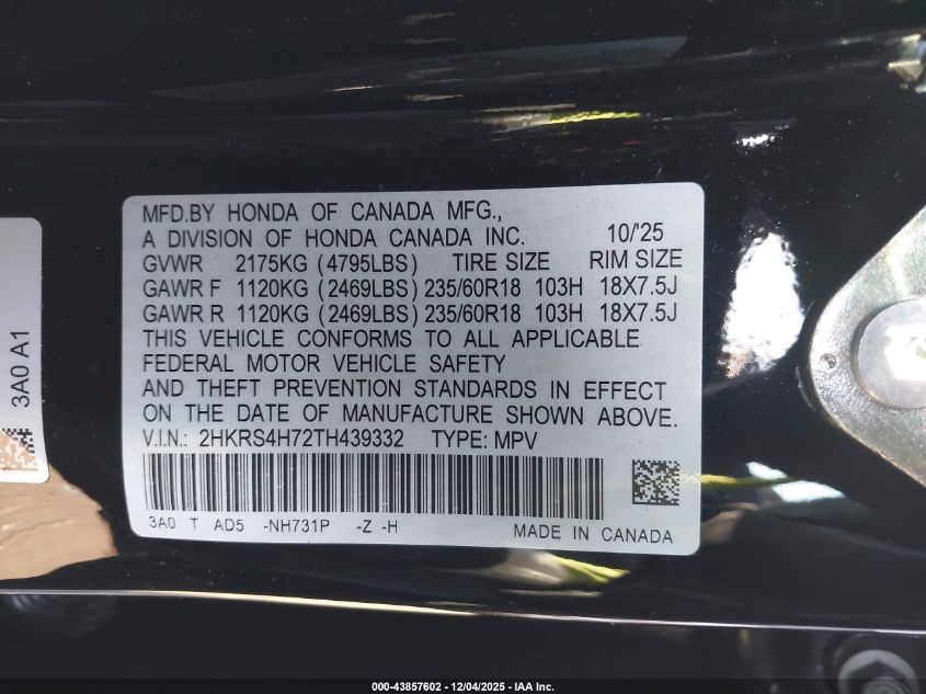 Колір ЧорнийЦиліндри 4Привід Повний привідVIN 2HKRS4H72TH439332Стан Заводиться та їде (перевірено)Ушкодження Ліва сторона