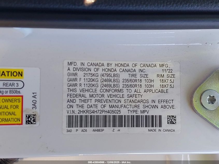 Колір БілийЦиліндри 4Привід Повний привідVIN 2HKRS4H72PH405025Стан СтаціонарноУшкодження Передня або задня AutoRIA