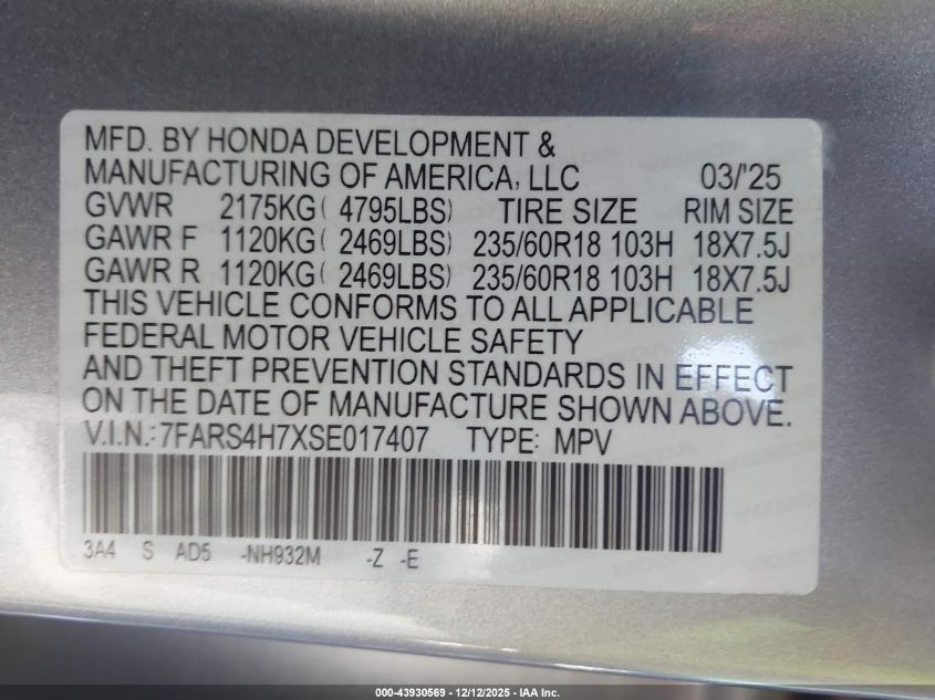 2025 HONDA CR-V 2025 року Бензин, 1.5, Повний привід, vin - 7FARS4H7XSE017407 з США