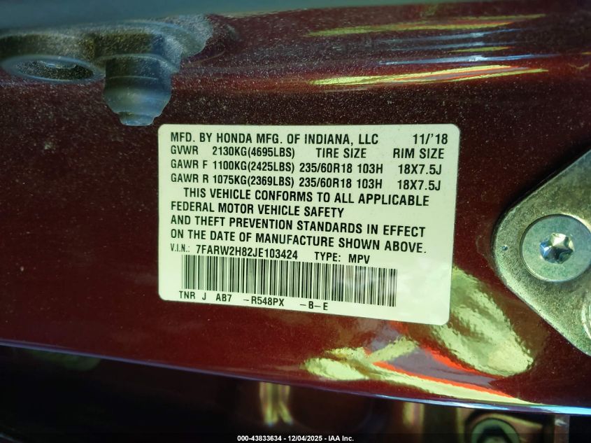 2018 HONDA CR-V 2018 року Бензин, 1.5, Повний привід, vin - 7FARW2H82JE103424 з США
