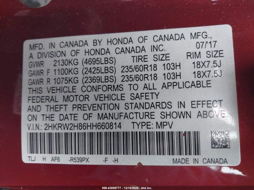 2017 HONDA CR-V 2017 року Бензин, 1.5, Повний привід, vin - 2HKRW2H86HH660814 з США