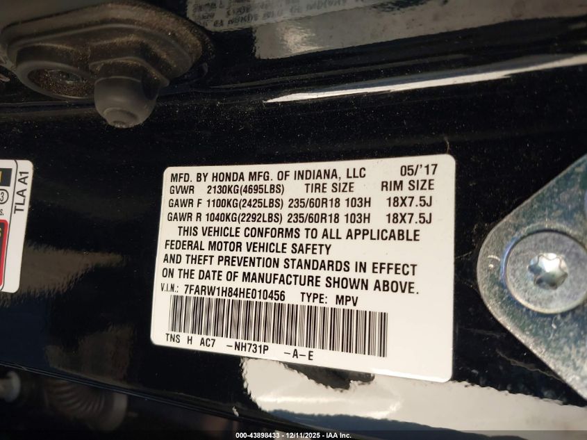2017 HONDA CR-V 2017 року Бензин, 1.5, Передній привід, vin - 7FARW1H84HE010456 з США