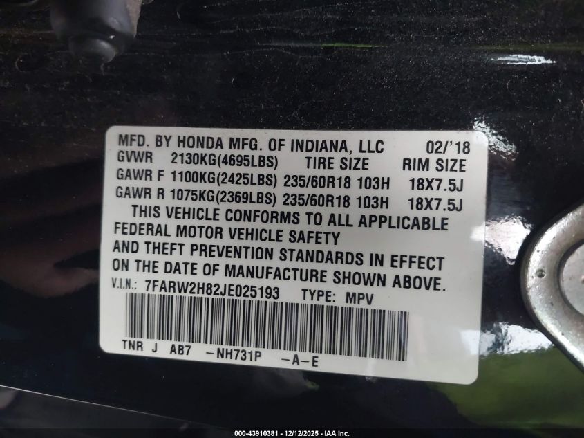 2018 HONDA CR-V 2018 року Бензин, 1.5, Повний привід, vin - 7FARW2H82JE025193 з США