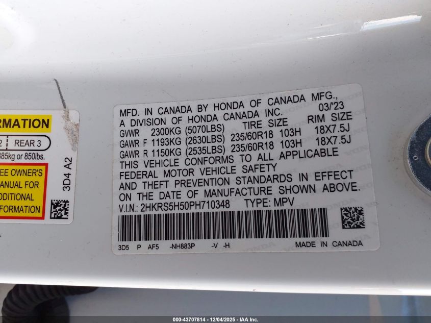 Колір БілийЦиліндри 4Привід Передній привідVIN 2HKRS5H50PH710348Стан СтаціонарноУшкодження Ліва сторона AutoRIA