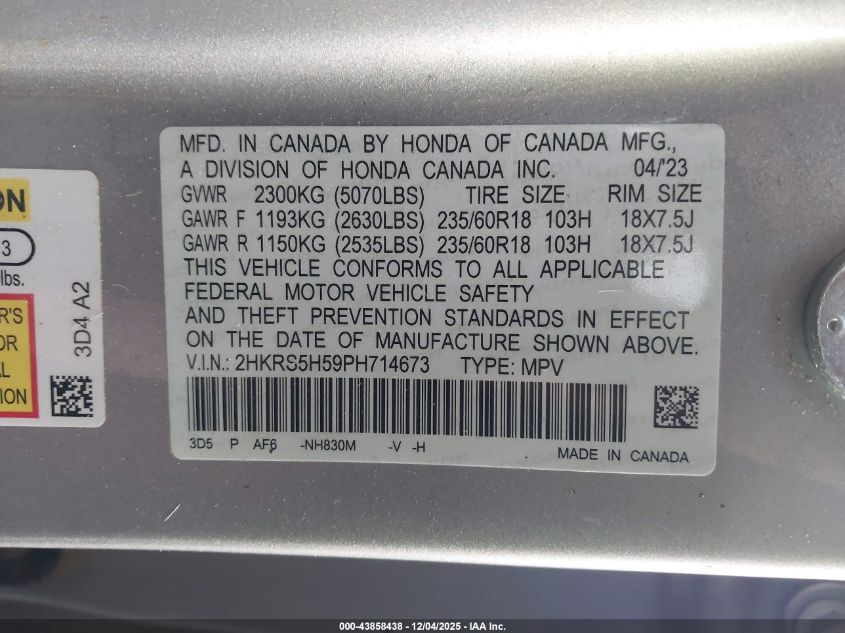 2023 HONDA CR-V HYBRID 2023 року Гібрид, 2.0, Передній привід, vin - 2HKRS5H59PH714673 з США