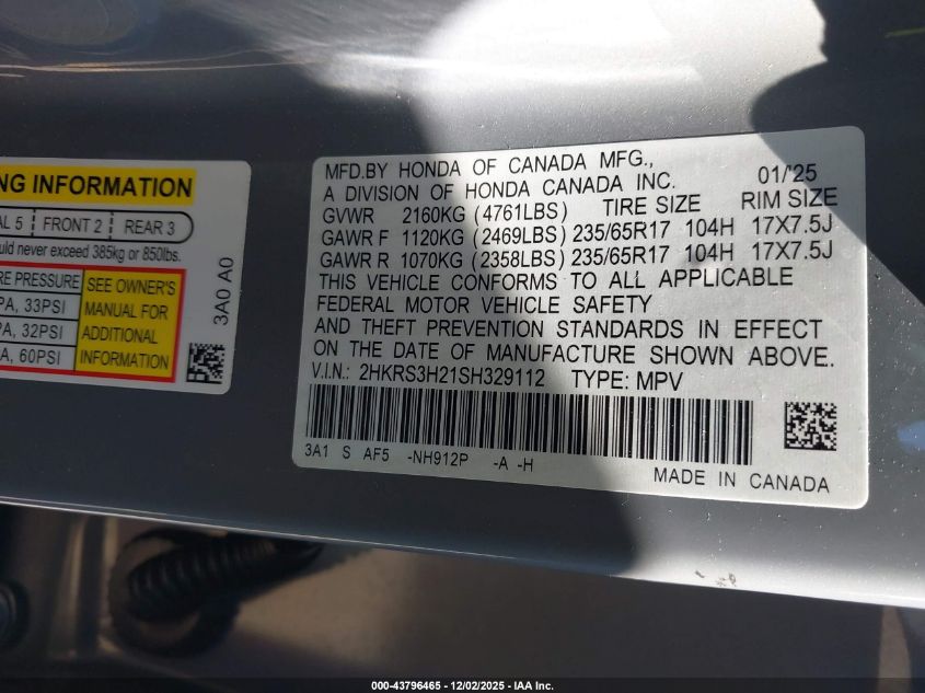 2025 HONDA CR-V 2025 року Бензин, 1.5, Передній привід, vin - 2HKRS3H21SH329112 з США
