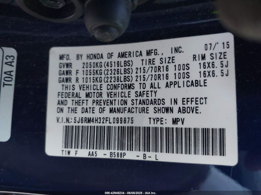 2015 HONDA CR-V 2015 року Бензин, 2.4, Повний привід, vin - 5J6RM4H32FL099875 з США