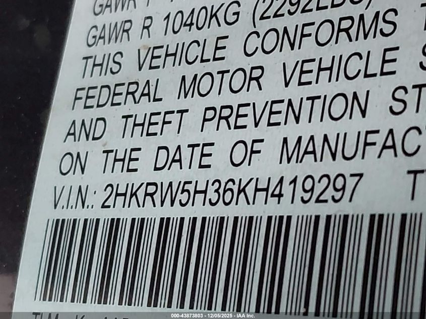 2019 HONDA CR-V 2019 року Бензин, 2.4, Передній привід, vin - 2HKRW5H36KH419297 з США