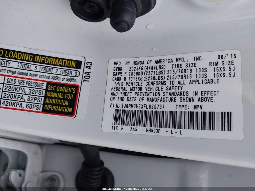 2015 HONDA CR-V 2015 року Бензин, 2.4, Передній привід, vin - 5J6RM3H3XFL020737 з США