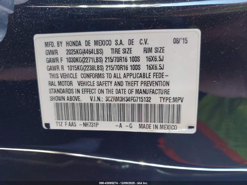 2015 HONDA CR-V 2015 року Бензин, 2.4, Передній привід, vin - 3CZRM3H34FG715132 з США