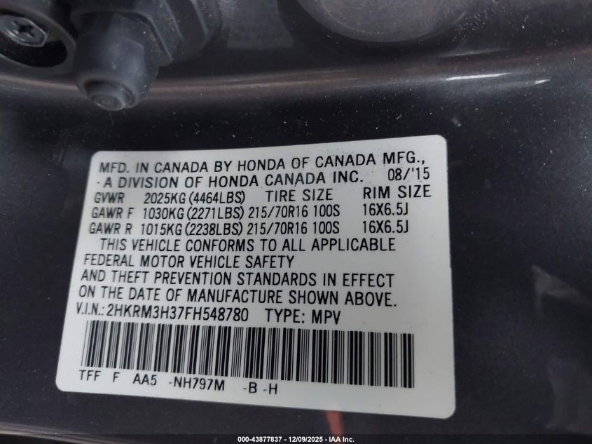 2015 HONDA CR-V 2015 року Бензин, 2.4, Передній привід, vin - 2HKRM3H37FH548780 з США