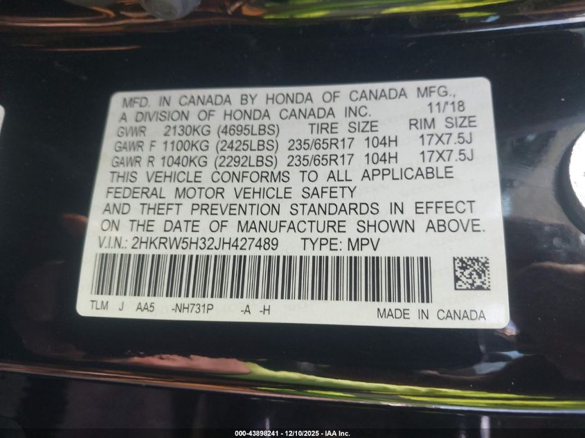 2018 HONDA CR-V 2018 року Бензин, 2.4, Передній привід, vin - 2HKRW5H32JH427489 з США