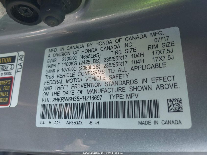2017 HONDA CR-V 2017 року Бензин, 2.4, Повний привід, vin - 2HKRW6H35HH218697 з США