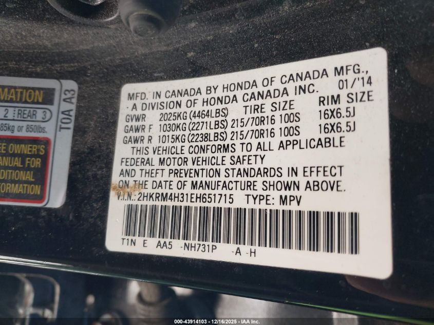 2014 HONDA CR-V 2014 року Бензин, 2.4, Повний привід, vin - 2HKRM4H31EH651715 з США