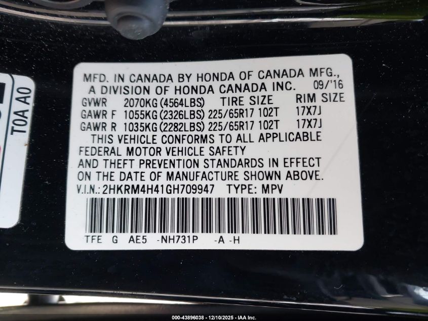 2016 HONDA CR-V 2016 року Бензин, 2.4, Повний привід, vin - 2HKRM4H41GH709947 з США