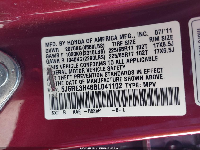 2011 HONDA CR-V 2011 року Бензин, 2.4, Передній привід, vin - 5J6RE3H46BL041102 з США