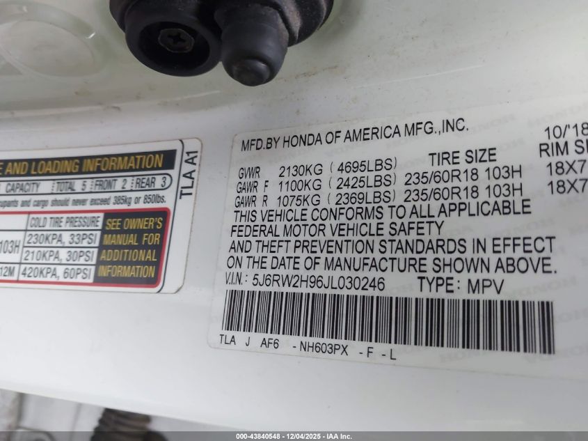 2018 HONDA CR-V 2018 року Бензин, 1.5, Повний привід, vin - 5J6RW2H96JL030246 з США