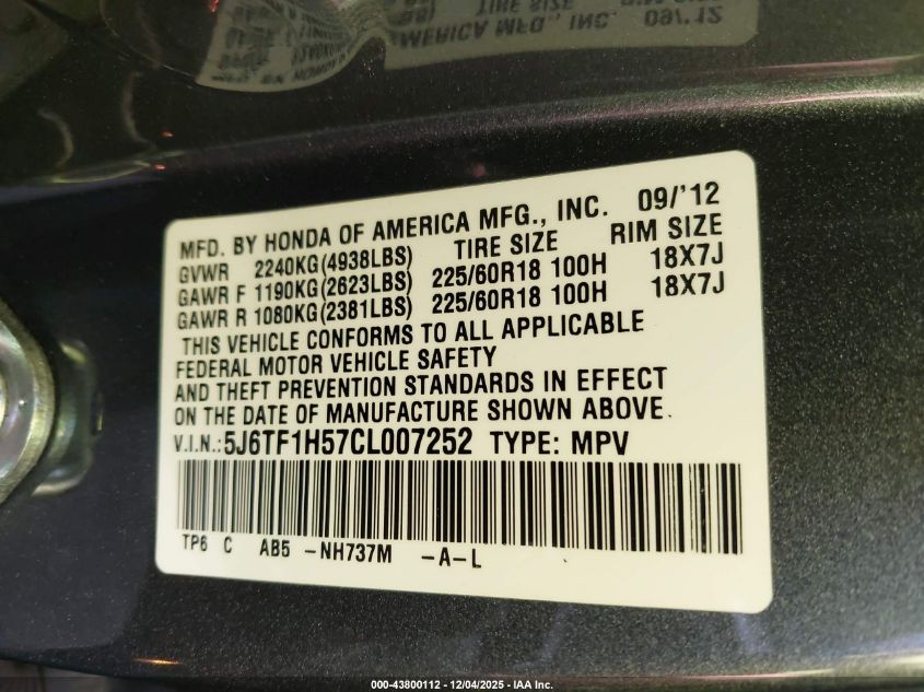 Колір СірийЦиліндри 6Привід Передній привідVIN 5J6TF1H57CL007252Стан Заводиться та їде (перевірено)Ушкодження Задня AutoRIA